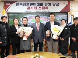 김해시는 30일 오전 10시 시장 접견실에서 ‘제42회 대한배드민턴협회장기 생활체육 전국배드민턴대회’ 유치 유공자에게 감사패를 전달했다.이는 전국 규모 생활체육대회를 김해시에 유치함으로써 시민들의