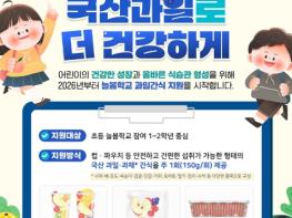 ■ 늘봄학교 간식, 국산과일로 더 건강하게어린이의 건강한 성장과 올바른 식습관 형성을 위해 2026년부터 늘봄학교 과일간식 지원을 시작합니다.· 지원대상: 초등 늘봄학교 참여 1~2학년 중심· 지원방식: