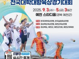 예천군은 ‘제36회 KTFL 전국실업단대항육상경기대회 및 제 79회 전국대학대항육상경기대회’ 를 9월 3일부터 5일까지 3일간 예천스타디움에서 개최한다고 밝혔다. 이번 대회에는 133개 실업팀과 44개 대학
