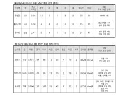 2025 신한 SOL뱅크 KBO 리그 8월 월간 MVP 후보로 총 6명의 선수가 선정됐다.투수 부문에서는 LG 유영찬, 톨허스트와 삼성 후라도, 야수 부문에서는 두산 양의지, SSG 에레디아, 키움 송성문이 8월 월간 MVP