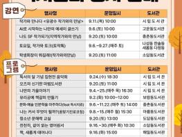 세종특별자치시 시립도서관이 9월 독서의 달을 맞아 관내 공공도서관15곳에서 시민 독서 문화 확산을 위한 각양각색의 독서문화 행사를 운영한다.이번 행사는 작가와 소중한 만남을 가질 수 있는 5개 강연과