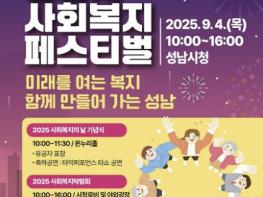 성남시는 ‘제26회 사회복지의 날(9.7)’을 기념한 페스티벌을 오는 9월 4일 시청 곳곳에서 개최한다.‘미래를 여는 복지, 함께 만들어 가는 성남!’을 주제로 하는 이날 행사는 성남시사회복지협의회가 주