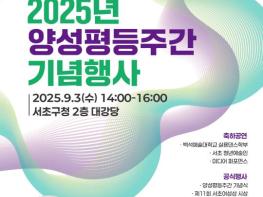 서울 서초구는 양성평등주간(9월 1일~7일)을 맞아 오는 9월 3일 오후 2시, 구청 2층 대강당에서 '2025년 서초구 양성평등주간 기념행사'를 개최한다고 밝혔다.올해 행사는 ‘내일도 행복한 양성평등을 향해!