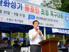 이재준 수원시장이 30일 화산체육공원에서 열린 ‘제20회 수원화성기 전국 동호인 초청 족구대회’ 개회식에 참석했다. 대회는 31일까지 진행될 예정이다. 이재준 시장은 축사에서 “대회에서 모두가 그간