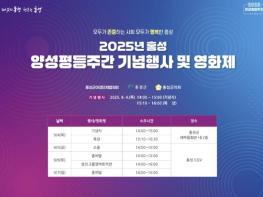 홍성군은 ‘2025 홍성군 양성평등주간(9. 1. ~ 9. 7.)’을 맞아 군민과 함께하는 다양한 프로그램을 마련하며 성평등 문화 확산에 나섰다.군에 따르면 오는 4일 새마을회관 2층에서 열리는 기념식에서 양성