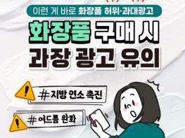 "화장품≠의약품"화장품은 인체를 청결·미화하여 매력을 더하거나 피부·모발의 건강을 유지·증진하기 위해 사용하는 물품.의학적 수준의 과도한 개선 효과(치료, 예방 등)를 내세우는 화장품 광고는 허위·과