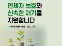 '사람을 살리는 금융'연체자 보호와 신속한 재기를 지원합니다.- 제2차 포용적 금융 대전환 회의금융위원회는 포용적 금융 대전환 2차 회의를 개최하고 연체자 보호와 신속한 재기 지원을 위한 개인 연체채