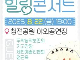 제천시는 오는 8월 22일 저녁 7시, 새롭게 정비를 마친 청전야외공연장에서 2025년 찾아가는 힐링콘서트를 개최한다고 밝혔다.이번 공연은 청전공원 야외공연장이 시민 누구나 즐길 수 있는 열린 문화공간으