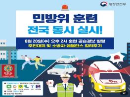 ■ 8월 20일(수) 오후 2시부터 20분간· 오후 2시, 훈련 공습경보가 발령되면 신속히 대피.· 운전 중 소방차나 앰뷸런스가 보이면 꼭 양보운전.· 오후 2시 15분 경계경보 발령 시 대피소에서 이동 가능.→ 오
