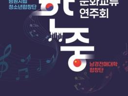 남원시립청소년합창단과 중국남경전매대학합창단이 함께하는 ‘한·중 문화교류 연주회’가 8월 1일 오후 7시, 남원 춘향문화예술회관 대공연장에서 열린다.이번 연주회는 국경과 세대를 넘어 음악으로 우정