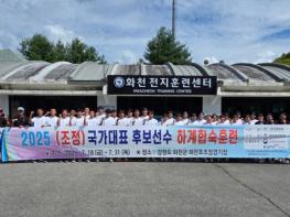 조정 국가대표 후보 선수단이 ‘물의 나라’ 화천에서 금메달 담금질에 한창이다. 선수 29명, 지도자 5명과 의무 트레이너 1명으로 꾸려진 선수단은 지난 18일부터 화천을 찾아 북한강과 종합운동장, 전지훈