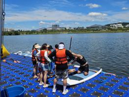 안동시가 주최하는 ‘2025 안동 수(水)페스타’에서 올해 새롭게 선보인 수상자전거 체험이 관광객들의 눈길을 사로잡으며 큰 호응을 얻고 있다.축제는 정하동 성희여고 앞 낙동강변에서 열리고 있으며, 도