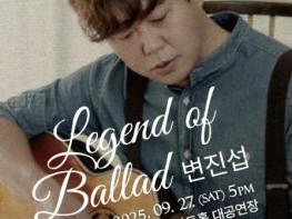 연천수레울아트홀은 오는 9월 27일 오후 5시 대한민국 발라드의 전설, ‘변진섭’의 단독 콘서트 'Legend of Ballad'를 개최한다.1988년 데뷔곡 ‘홀로된다는 것’을 시작으로 ‘너에게로 또다시’, ‘숙녀