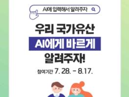 국가유산청은 7월 28일부터 8월 17일까지 3주에 걸쳐 중·고등학생 및 대학생을 대상으로 생성형 인공 지능(AI)에 노출된 국가유산 관련 오류를 찾아 시정하고 정확한 내용으로 학습시키는 '국가유산 AI 학습