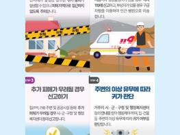 "매몰자나 부상자가 있을경우 소방서(119)에 신고하고 주변 위험 상황을 확인하세요"STEP 1. 산사태 피해지역 접근주의- 산사태가 발생한 장소는 추가 붕괴가 발생할 수 있으니 피해 지역으로 접근하지 않도