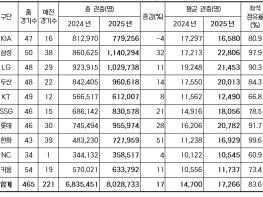 2025 신한 SOL뱅크 KBO 리그가 오늘(24일) 5개 구장에서 총 8만 487명이 입장하며 역대 6번째이자 2023 시즌부터 3시즌 연속으로 800만 관중을 달성했다.이로써 오늘 경기까지 누적 관중 802만 8,733명을 기