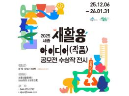 세종특별자치시가 세종새활용센터에서 ‘2025년 새활용 아이디어(작품) 공모전’ 수상작 전시를 연다고 15일 밝혔다.이번 공모전은 지역 내 새활용 산업육성과 자원순환 문화 확산을 위해 지난 8월 세종 시