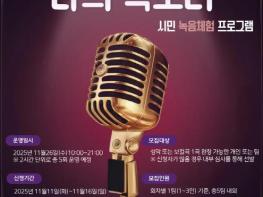 오산시는 오는 11월 26일 소리울도서관에서 시민들이 직접 녹음 과정을 체험할 수 있는 프로그램 『소리울의 하루, 나의 목소리』를 운영한다고 밝혔다.이번 프로그램은 시민들이 전문 장비와 시스템을 갖춘