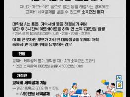 대학생 교육비 특별세액공제 소득요건 폐지자녀가 아르바이트 등으로 용돈 등을 해결하는 경우에도 교육비 세액공제를 받을 수 있도록 소득요건 폐지대학생 A는 용돈, 기숙사비 등을 해결하기 위해 방과 후