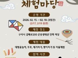 구리시는 민족 최대의 명절 설을 맞아 오는 2월 15일부터 18일까지 구리시 곤충생태관에서 ‘2026 설맞이 전통 놀이 체험 마당’을 운영한다고 밝혔다.이번 행사는 설 연휴 기간 곤충생태관을 찾는 방문객들