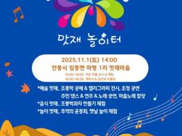 안동시는 대한민국 문화도시 조성사업의 일환으로 추진 중인 문화 거점마을 사업의 하나로, 오는 11월 1일 오후 2시 임동면 마령리 맛재마을 일원에서 ‘어우렁더우렁 맛재놀이터’ 마을문화행사를 개최한다