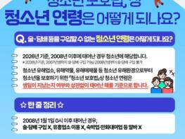 '청소년 보호법'상 청소년 연령은 어떻게 되나요?Q. 술·담배 등을 구입할 수 없는 청소년 연령은 어떻게 되나요?2026년 기준, 2008년 이후에 태어난 경우 청소년에 해당합니다.※ 2026년 기준, 2007년생까지