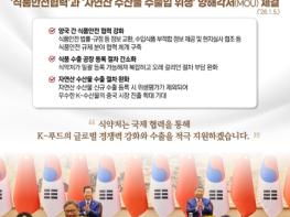 대한민국-중국 식품 교역 확대와 안전 협력이 한층 강화됩니다.- '식품안전협력'과 '자연산 수산물 수출입 위생' 양해각서(MOU) 체결('26.1.5.) 양국 간 식품안전 협력 강화식품안전 법률·규정 등 정보 교환