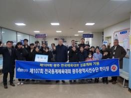 광주광역시체육회(회장 전갑수)가 제107회 전국동계체육대회 사전경기(1.12.~18.)에 출전하는 광주 소속 선수단의 훈련장을 찾아 선수단을 격려했다.시체육회는 지난 5일 전갑수 체육회장이 염주빙상장을 찾