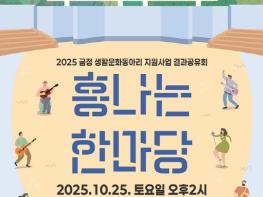 부산시 금정구 금정문화재단은 금정생활문화동아리 지원사업 '흥나는 금정'의 결과 공유회 “흥나는 한마당”프로그램을 오는 10월 25일 오후 2시부터 오후 4시까지 금정문화회관 야외공연장에서 개최한다고