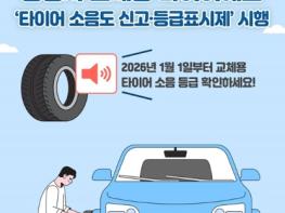 승용차 교체용 타이어에도 '타이어 소음도 신고·등급표시제' 시행- 2026년 1월 1일부터 교체용 타이어 소음 등급 확인하세요!■ 타이어 소음도 신고·등급표시제란?타이어 제작·수입사가 소음 허용기준 적합