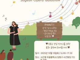 서울 성동구는 오는 10월 18일 토요일 오후 4시부터 5시 30분까지 사근마을활력소(성동구 사근동길 72) 앞 공원에서 1인가구를 위한 특별한 음악회 ‘사근 오페라 갈라쇼’를 개최한다고 밝혔다. ‘사근 오