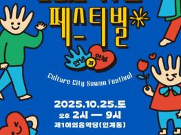 수원특례시는 25일 오후 2시 제1야외음악당(인계동)에서 ‘제2회 문화도시 수원 페스티벌’을 연다.‘안녕과 안부’를 주제로 열리는 올해 축제는 ▲공연 ▲체험 ▲전시 ▲마켓 등 다채로운 프로그램으로 채