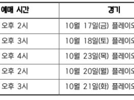 KBO는 10월 17일(금)부터 열리는 삼성 라이온즈와 한화 이글스의 2025 신한 SOL뱅크 KBO 플레이오프 입장권 예매를 10월 15일(수) 오후 2시부터 진행한다.플레이오프 입장권은 포스트시즌 입장권 단독 판매