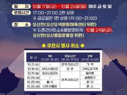 오산시는 오는 10월 17일부터 26일까지 매주 금·토·일 저녁, 오산천(오색문화체육센터 뒤편)에서 시민들이 야외에서 영화를 즐길 수 있는 '2025 제3회 오산천 별밤영화제'를 개최한다고 밝혔다.이번 영화제