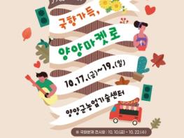 양양군 신활력플러스사업 추진단이 주최하고 양양군이 후원하는 ‘국향가득, 양양마켓로(路)’ 행사가 오는 10월 17일부터 19일까지 3일간, 양양군 농업기술센터 본관 앞에서 열린다.이번 행사는 지역의 매