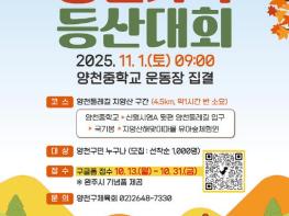 양천구는 구민의 건강 증진과 건전한 여가 활동을 지원하기 위해 11월 1일 지양산에서 ‘2025 양천가족 등산대회’를 개최한다고 밝혔다.이번 대회는 양천구가 주최하고 양천구체육회가 주관하는 행사로, 가