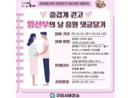 구리시는 제20회‘임산부의 날’(10월 10일)을 기념해 임신과 출산의 가치를 되새기고 시민 건강 증진을 도모하기 위한 ‘즐겁게 걷고, 임산부의 날 응원 댓글 달기’ 챌린지를 오는 10월 10일부터 24일까지
