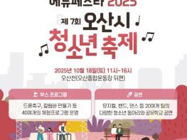 오산시는 오는 10월 18일 오전 11시부터 오후 4시까지, 오산종합운동장 뒤편 오산천 잔디밭에서 화성오산교육지원청과 공동으로 ‘오산나래공유학교 에듀페스타 2025 · 제7회 오산시 청소년 축제’를 개최한