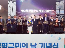 부평구는 지난 27일 부평풍물대축제 행사장에서 구민 화합을 위한 ‘제32회 구민의 날 기념행사’를 개최했다. 이날 행사에는 차준택 구청장을 비롯해 주요 내빈 및 주민 등 2천여 명이 참석했으며, 구민을