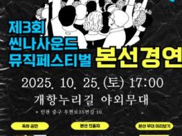 (재)인천중구문화재단은 오는 10월 25일 오후 5시 인천 중구 개항누리길 야외무대에서 ‘제3회 씬나사운드 뮤직 페스티벌’ 본선 경연을 개최한다고 밝혔다. 올해 3회를 맞이하는 씬나사운드 뮤직 페스티벌