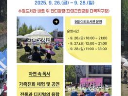성남도시개발공사 수정도서관은 오는 9월 26일부터 28일까지 ‘제3회 책과 음악이 흐르는 도심 속 야외도서관’을 개최한다고 25일 밝혔다.야외도서관은 수정도서관 위 잔디광장(단대근린공원 다목적구장)에