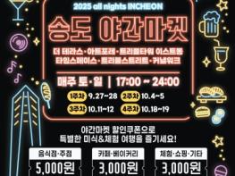 인천광역시와 인천관광공사(사장 백현)는 9월 27일부터 10월 19일까지 매주 토·일 4주간 송도 일대 6개 상권에서 풍성한 할인혜택과 더불어 상권별 다양한 행사를 즐길 수 있는‘2025 all nights INCHEON 송