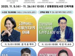 강동구는 오는 11월 개최되는 명사초청특강 '강동지식플러스'의 참여자를 오는 26일부터 모집한다고 밝혔다.“급변하는 미래, 지속 가능한 삶”을 주제로 열리는 이번 특강은 11월 5일부터 26일까지 매주 수
