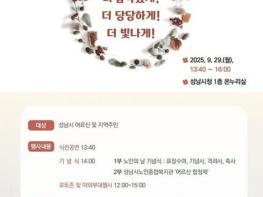 성남시는 ‘제29회 노인의 날(10.2)’을 맞아 오는 9월 29일 오후 1시 40분 시청 1층 온누리에서 “더 품격있게! 더 당당하게! 더 빛나게!”를 주제로 기념행사를 연다.성남시노인종합복지관협회가 주관하는