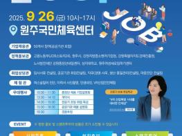 원주시와 고용노동부는 오는 26일 오전 10시부터 오후 5시까지 원주국민체육센터에서 ‘강원일자리박람회 2025 원주 잡(JOB) GO!’를 개최한다.이번 행사에는 46개 기업과 공공기관이 참여해 지역 우수 인재