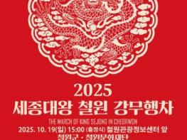 철원문화재단은 오는 10월 19일, 철원관광정보센터와 철원 고석정 꽃밭 일원에서‘2025 철원 세종대왕 강무행차’를 개최한다.행사는 오후 2시, 철원관광정보센터에서 웅장한 출정식을 시작으로 철원 세종대