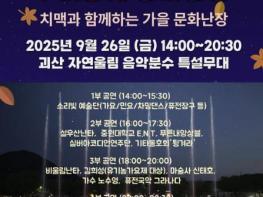충북 괴산군은 ‘문화가 있는 날’ 주간을 맞아 오는 26일 오후 2시, 자연울림 음악분수 앞 특설무대에서 ‘문화가 있는 날 구석구석 문화배달 '우리동네 문화난장'’ 제7회차 행사를 개최한다고 밝혔다.이