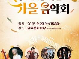 중랑구는 망우역사문화공원 내 ‘망우문화마당’을 조성하고, 오는 9월 23일 준공을 기념해 가을음악회를 개최한다.망우문화마당은 역사적 가치와 자연환경을 간직한 망우역사문화공원 안에 조성된 공간으로