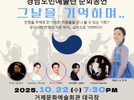 22일 거제문화예술회관 대극장에서 전쟁과 평화를 노래하다! 10월의 높은 가을 하늘에 울려 퍼진 웅장한 하모니!거제시는 2025 경남도민예술단 순회공연 ‘경남심포닉밴드 '그 날을 기억하며..'’를 유치해