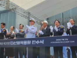 주광덕 남양주시장은 17일 울산 HD현대중공업 조선소에서 열린 차세대 이지스 구축함 ‘다산정약용함’ 진수식에 참석했다. ‘다산정약용함’은 정조대왕급(KDX-Ⅲ Batch-Ⅱ) 2번함으로, 첨단 전투체계를 갖